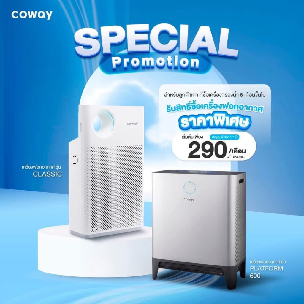 Promotion Cooway เครื่องกรองน้ำ 7 ปี + เครื่องฟอกอากาศ 5 ปี โปรโมชั่นซื้อเครื่องกรองน้ำแบบ Subscribe จ่ายรายเดือนพร้อมบริการ Coway Care 7 ปี คู่กับเครื่องฟอกอากาศ Coway Care 5 ปี ลดฟรี 3 เดือนสุดท้าย
